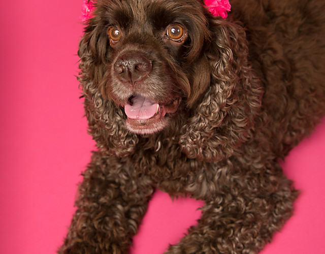 Coco is a handsome seven year old Cocker Spaniel. He enjoys going for long walks, playing fetch and lives a very social life. When Coco wants to make a little noise...he LOVES playing with his favorite squeaky toy, it's a yellow pig that sounds just like a pig when he squeaks it!! (This is seriously the coolest dog toy I think I've ever seen)!!